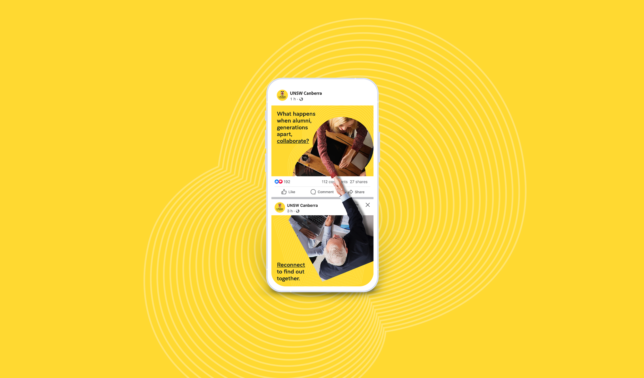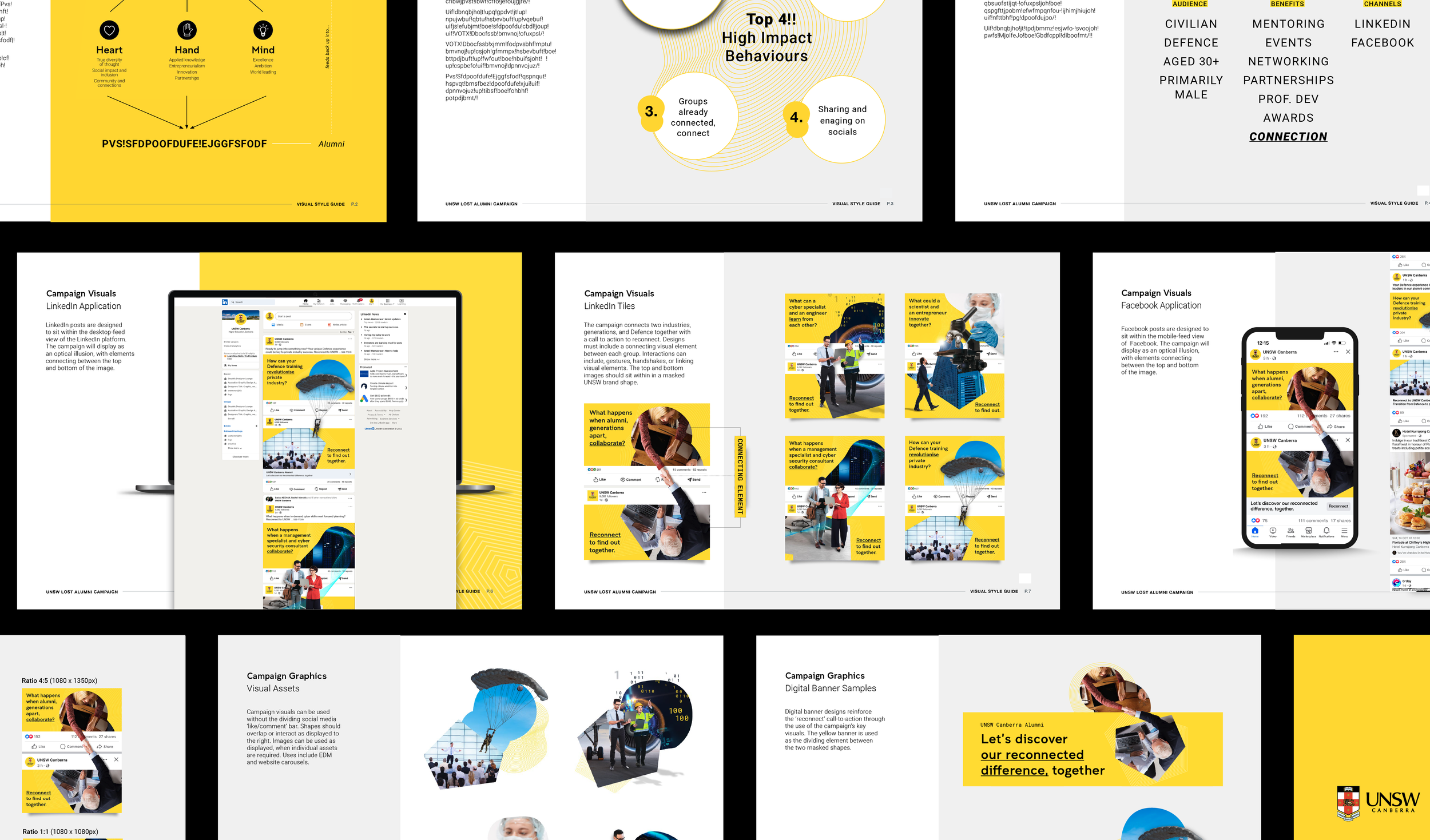 UNSW Canberra, the Defence-focused campus of the University of New South Wales, wanted to reconnect with alumni who had fallen off the radar. They needed a campaign that felt genuine, modern and would cut through digital noise to spark interest. I developed the Our Re-connected Difference social campaign, using digital optical illusions to represent connection, curiosity and the shared experience of Defence alumni, generations and industry.